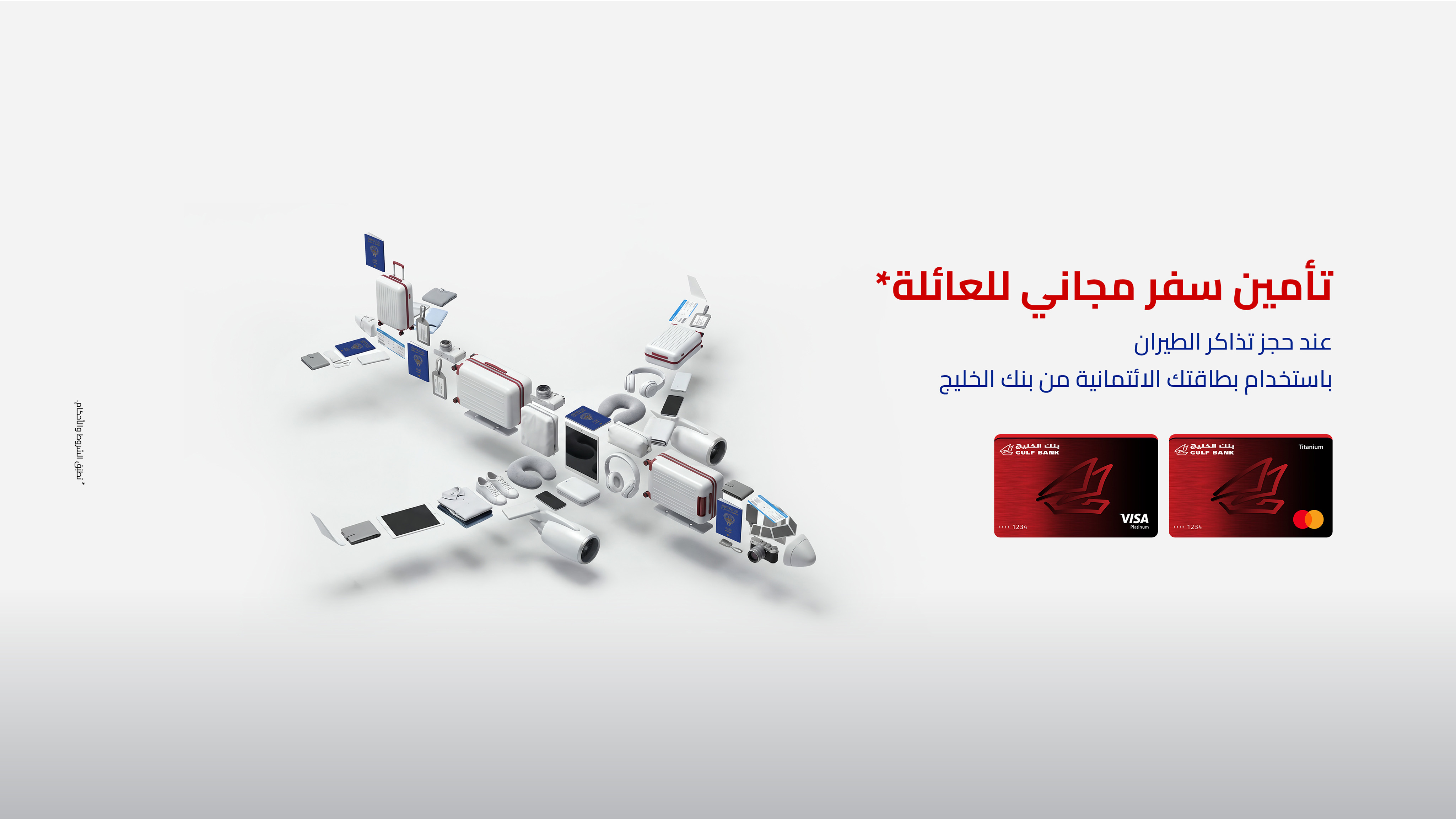 يحق لحاملي بطاقات بنك الخليج الائتمانية الحصول على تأمين سفر مجاني عند قيامهم بحجز تذاكر الطيران باستخدام البطاقة، علماً أن إصدار وثيقة التأمين إلزامي قبل تقديم مطالبة.