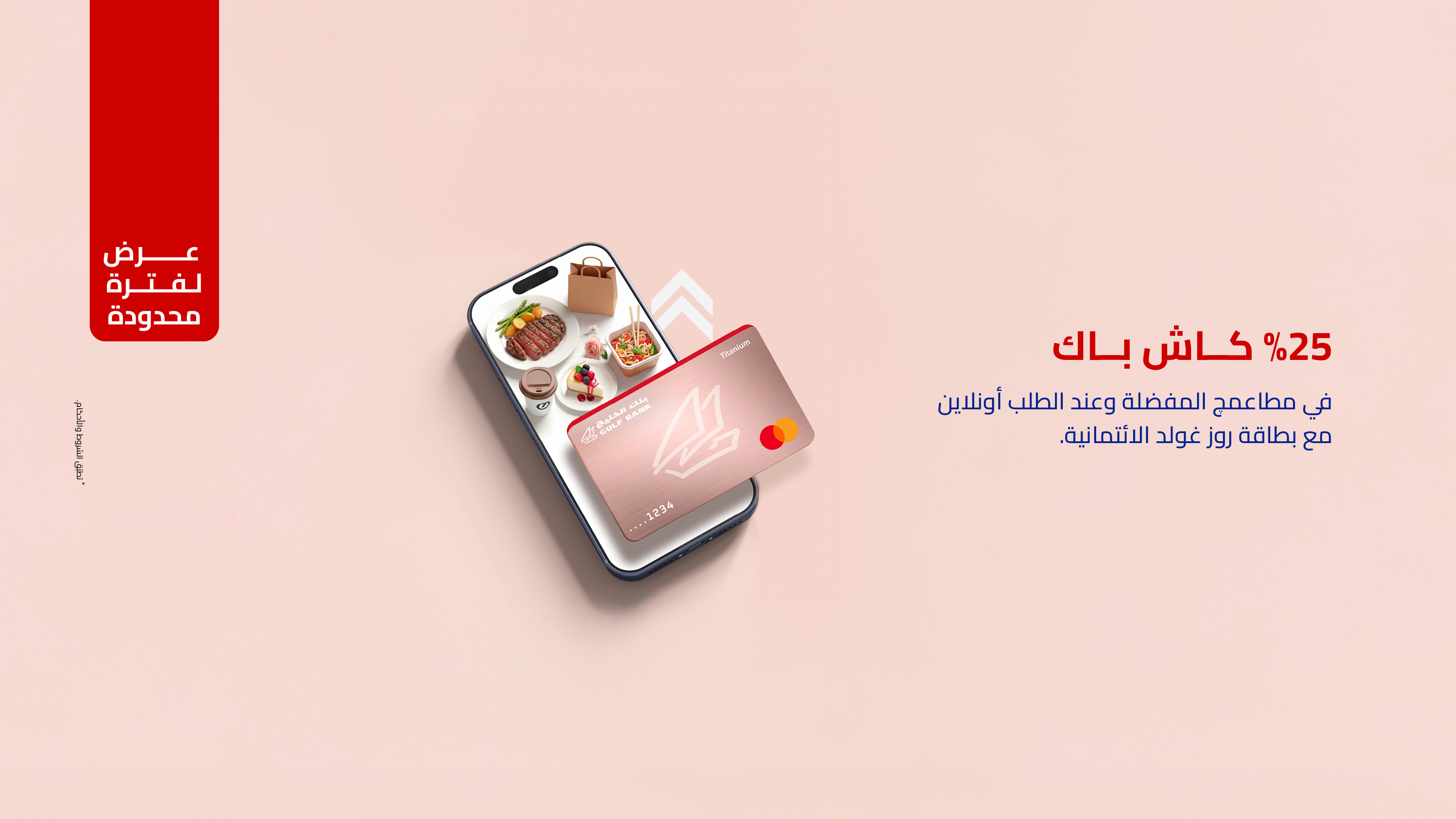 بإمكان حاملي بطاقات روز غولد الاستمتاع باسترداد نقدي حصري بنسبة 25٪ على جميع المطاعم والمقاهي داخل الكويت، بما في ذلك عند شراء الطعام والمشروبات من خلال التطبيقات الالكترونية عند الدفع باستخدام بطاقة روز غولد الائتمانية من بنك الخليج.