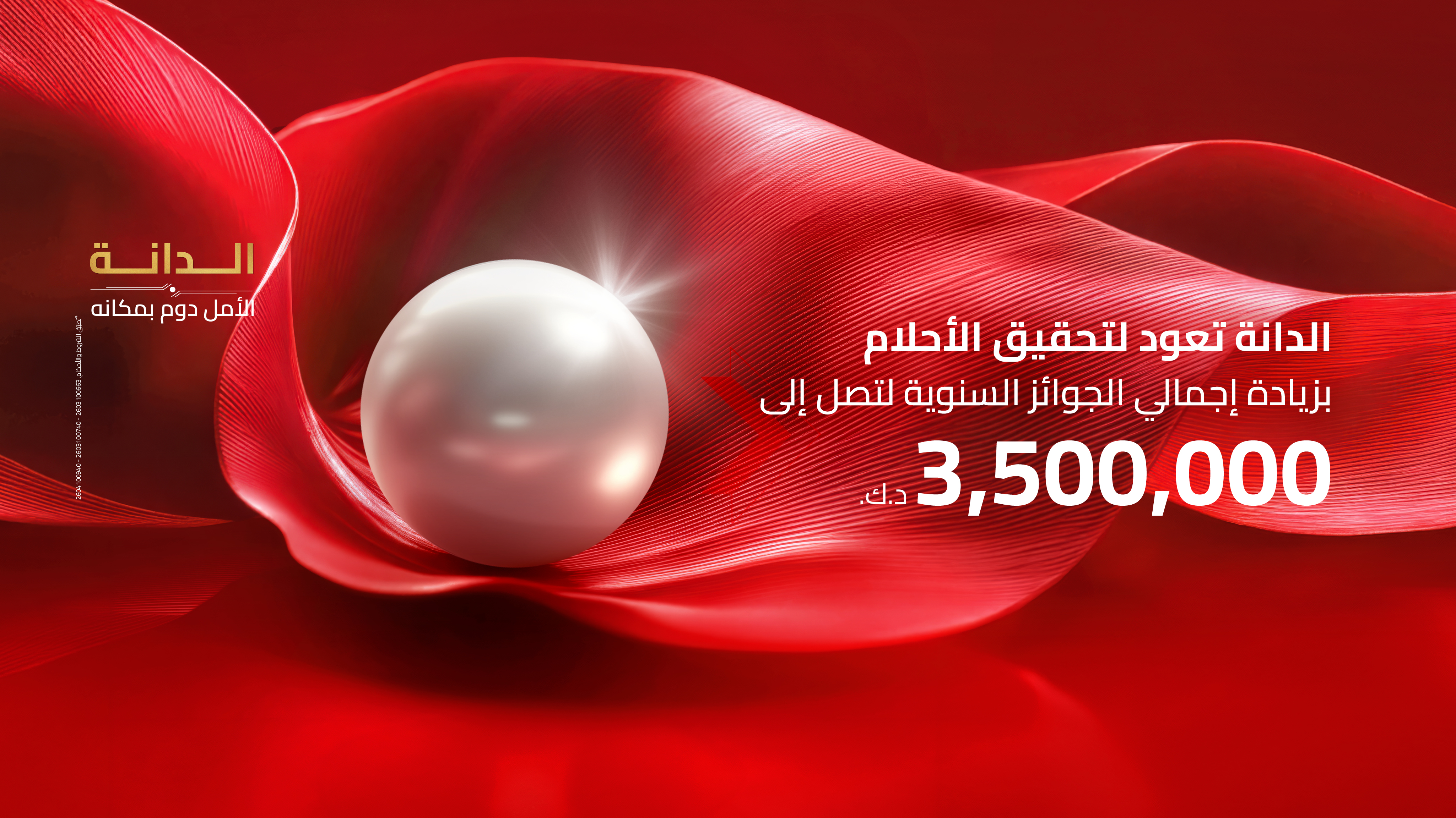 ويواصل حساب مليونير الدانة بتحقيق الأحلام بزيادة إجمالي الجوائز السنوية لتصل إلى 3,500,000 د.ك. حيث تتنوع السحوبات على مدار العام لتشمل جوائز جديدة تبلغ 1,500,000 د.ك. و 1,000,000 د.ك. لرابح واحد لكل جائزة، وجائزة تبلغ 200,000 د.ك. لخمس رابحين.